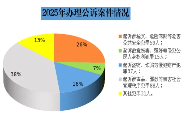 受理审查逮捕案件70件111人,批准逮捕62件99人;受理审查起诉案件175件245人,提起公诉160件230人。