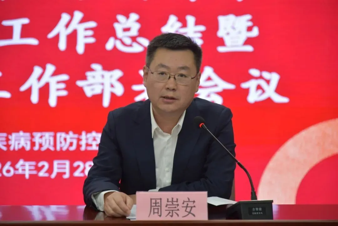区疾控中心主任周崇安对2025年重点亮点工作进行了简要回顾,他指出,过去一年中心在深化体制改革、提高业务水平、推进医防协同、获取资质认证、提升执法效能等方面均取得扎实进展。2026年,全体干部职工要重点在监测预警、科研创新、队伍建设、指标攻坚、依法执法、宣传科普、诉求处置等方面持续发力,推动疾控事业再上新台阶。