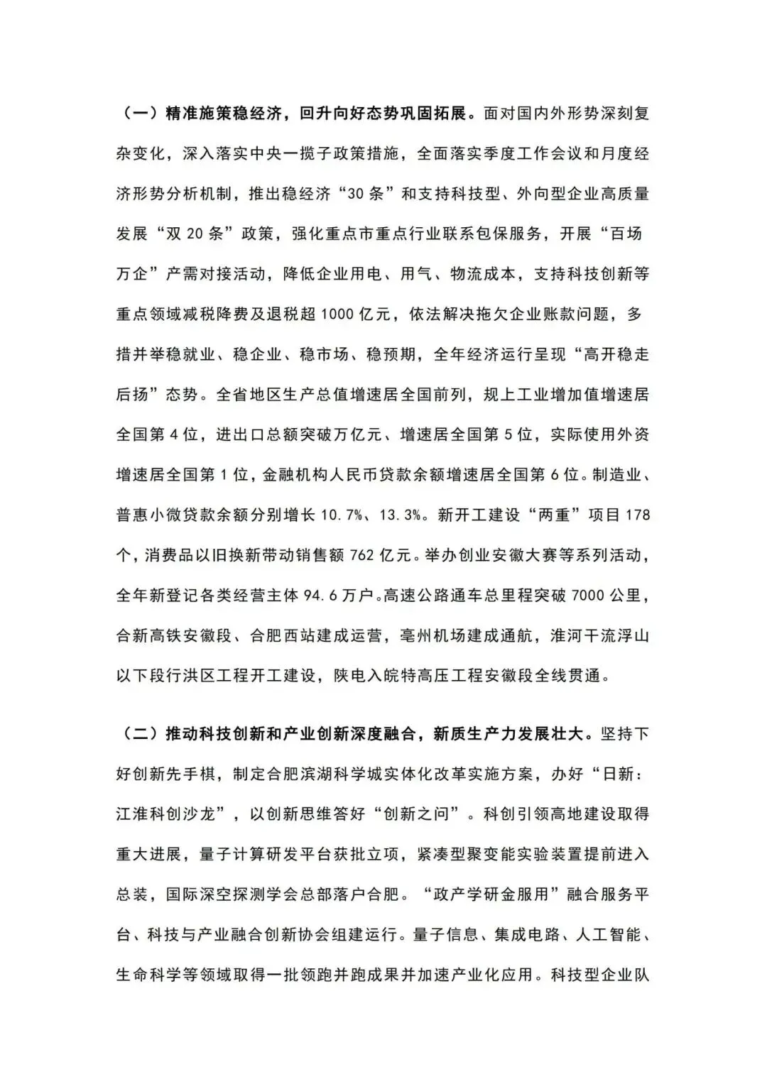 区域发展:加快皖北地区全面振兴,健全合肥都市圈一体化发展推进机制,提升芜湖省域副中心能级,深化皖南国际文化旅游示范区建设;深入推进城市功能品质活力提升行动