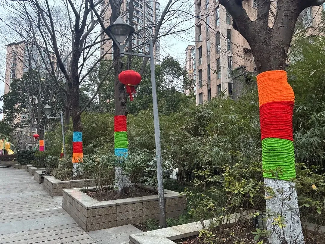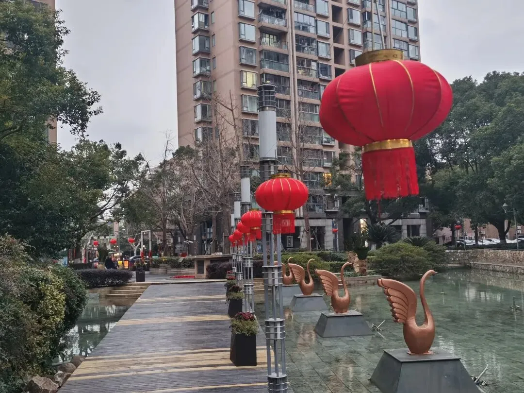 物业团队早早行动起来布置小区。在小区的出入口、宽敞的主干道,还有大家常去的休闲广场,都挂上了红彤彤的灯笼,一串串彩灯也亮闪闪地登场了。