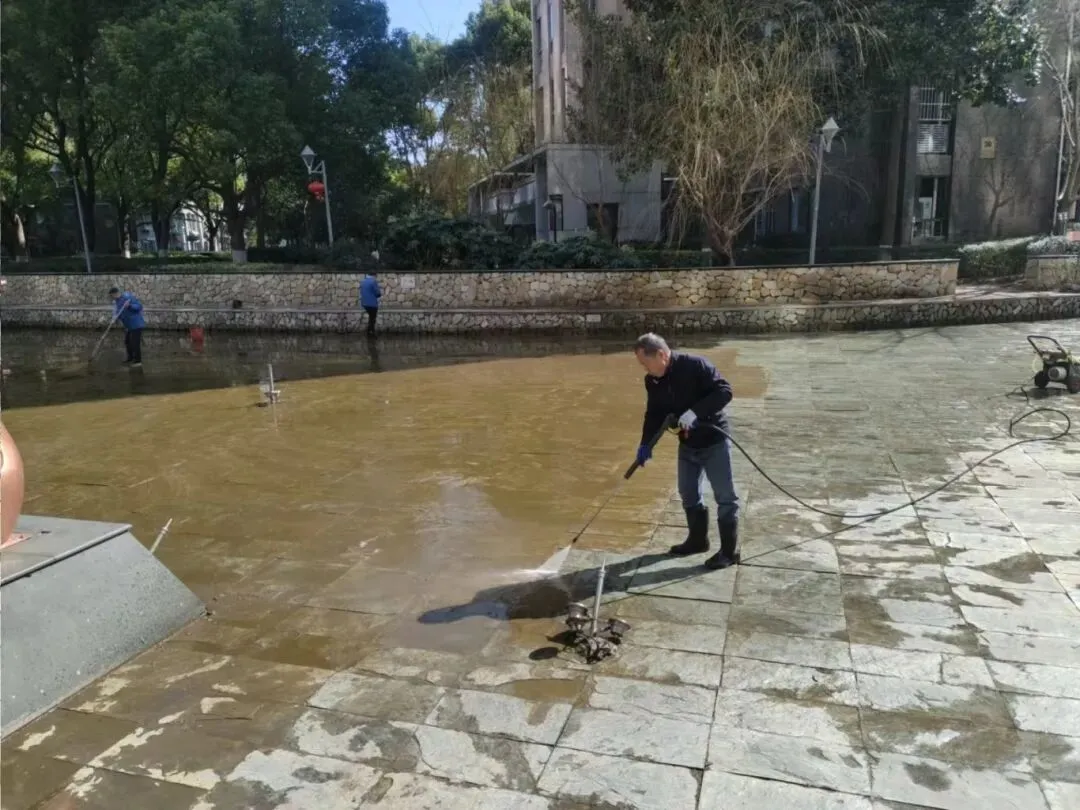 团队悉心筹备,严格依照既定的“先放水排空池体、后清泥去除沉积、再打磨平整池壁”流程,对水井观光池展开全方位、精细化的清洗作业,确保其以焕然一新的姿态迎接马年新春的到来。