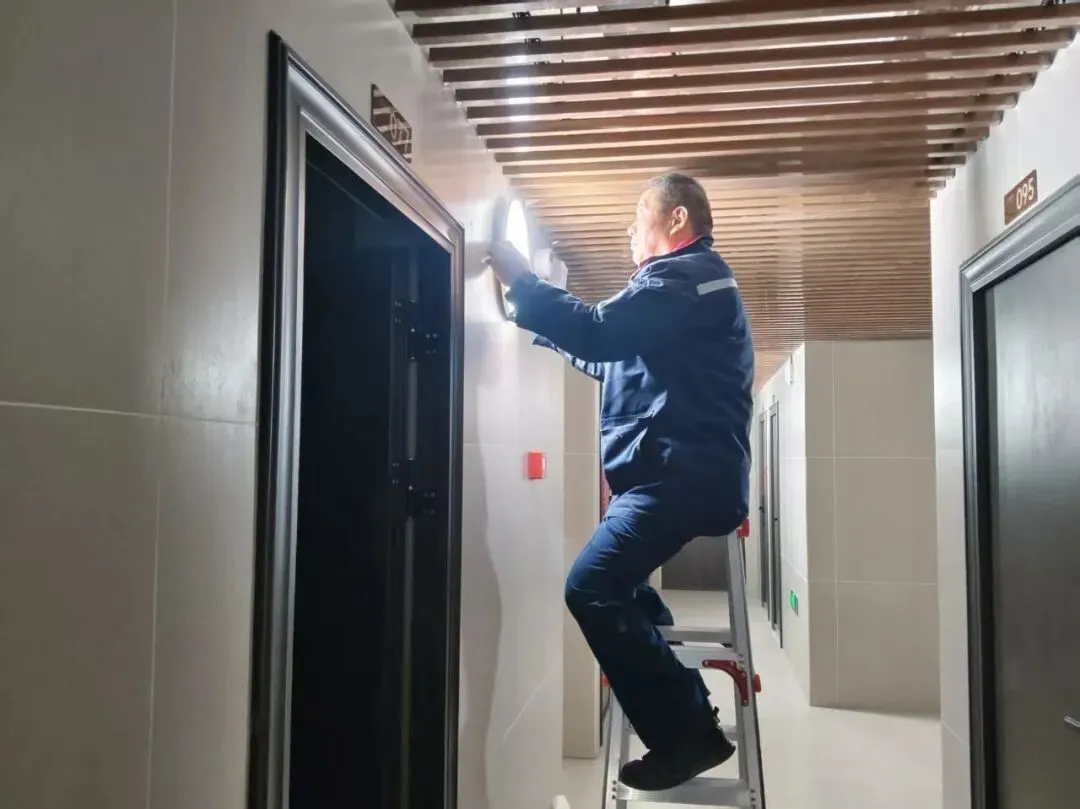 1.规整电梯轿厢保护膜。