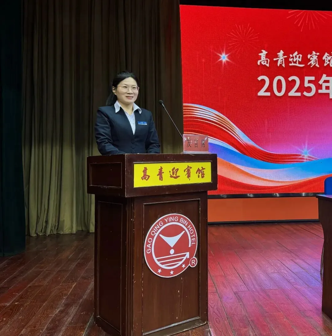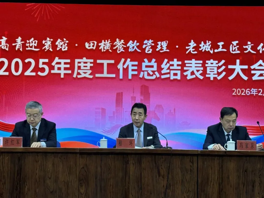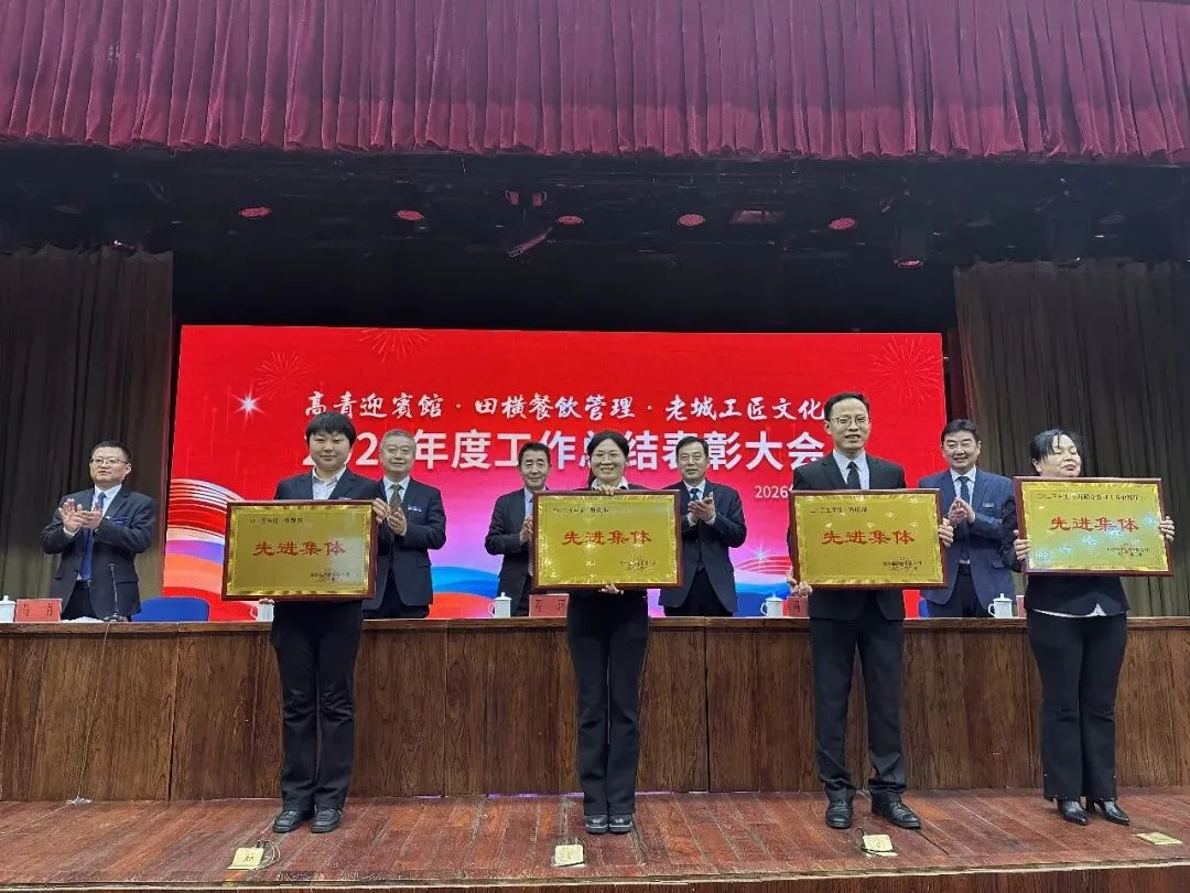 2月28日,高青迎宾馆、田横餐饮管理、老城工匠文化在牡丹厅召开2025年度工作总结表彰大会,全体员工齐聚一堂,复盘年度耕耘、表彰先进集体、部署2026年发展目标,共绘品牌发展新蓝图。