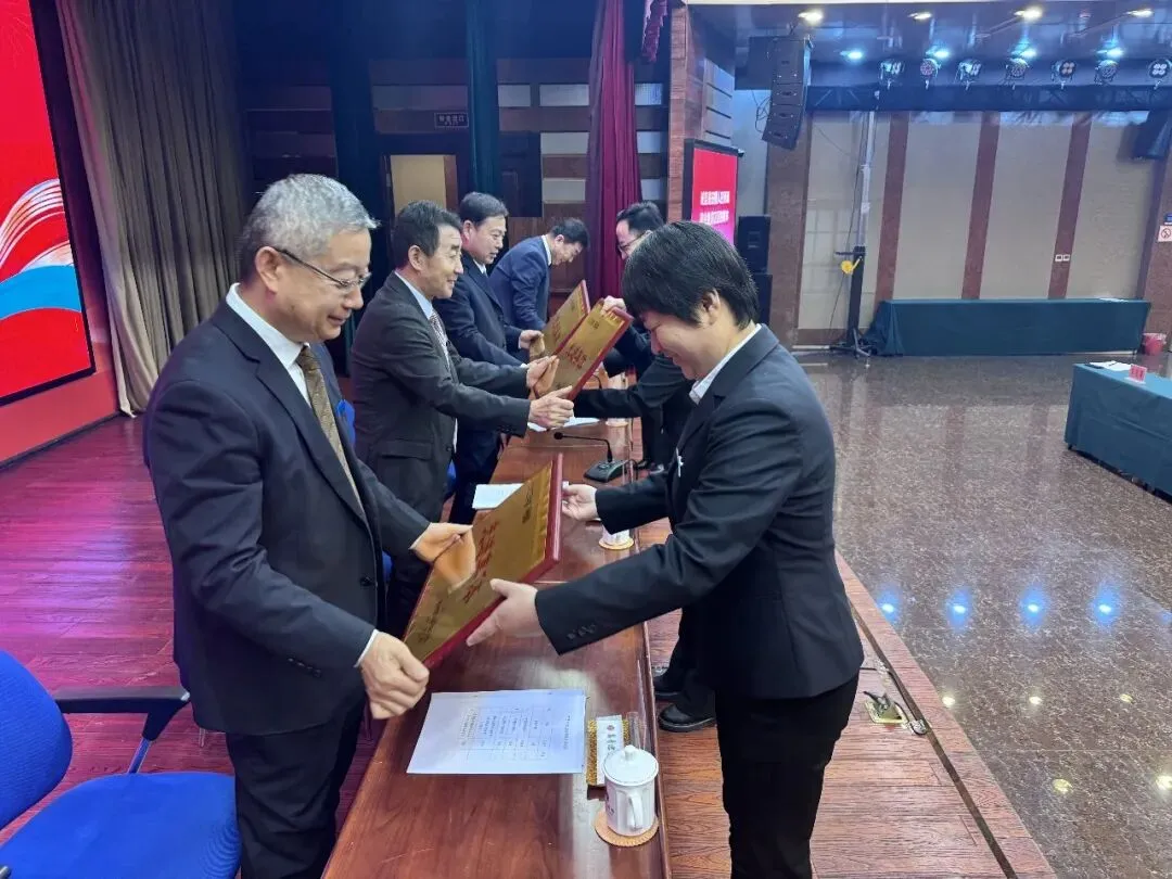 公司领导为年度集体颁发荣誉奖牌,现场掌声热烈、氛围庄重,先进集体代表,分享团队管理、服务提升,业绩攻坚的实战经验,展现担当实干、团结奋进的团队风貌,传递榜样力量