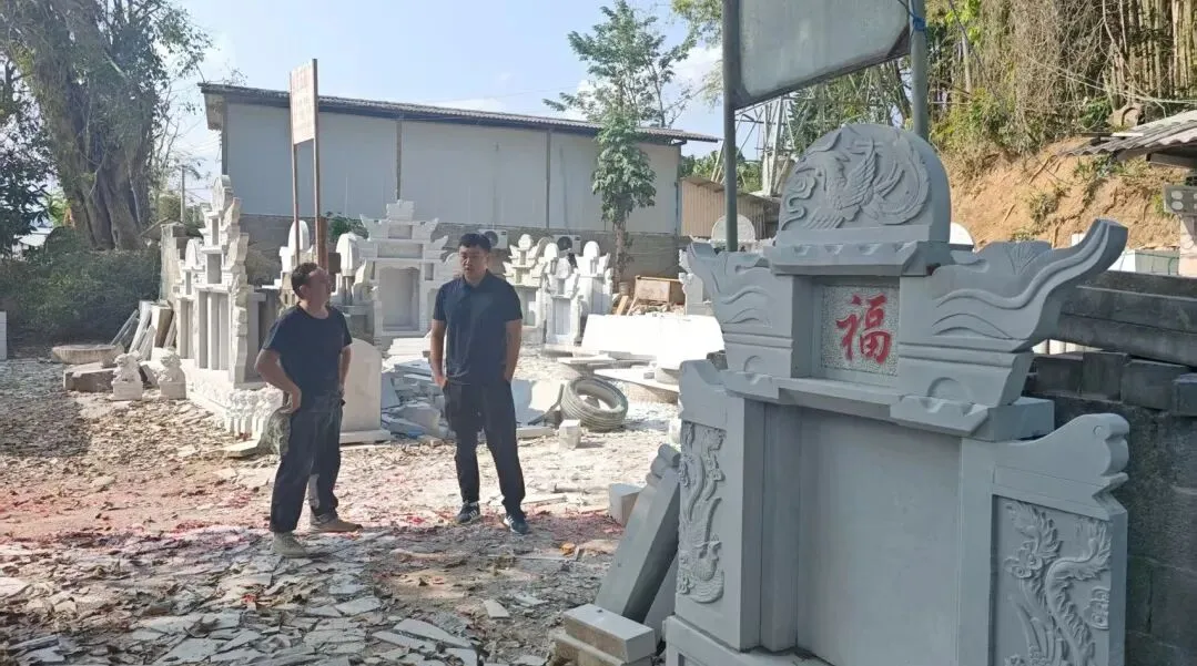 2月26日,副镇长、社会事务办工作人员,到国道213公路沿线大型墓碑制造和销售点,开展宣传动员搬迁工作。