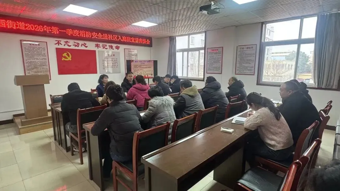 ●铁西街道办事处主任谢飞在人民西路社区组织召开铁西街道2026年第一季度消防安全进社区入庭院宣讲座谈会,会上铁西街道综合执法大队大队长李冰洋宣讲领学乡镇(街道)行使消防行政处罚权事项适用范围及相关内容,区消防救援局宣讲相关消防安全知识。