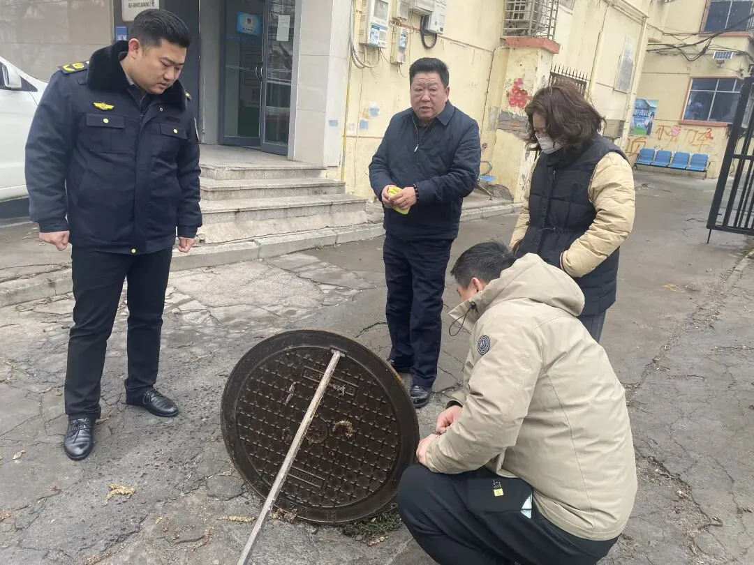 ●铁西街道办事处综合行政执法大队大队长李冰洋到新迪小区现场查看污水管网走向并研判疏通方案。