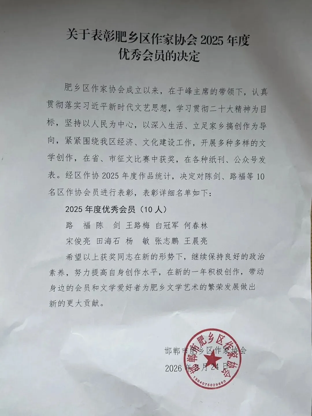 2025年区作协在区文联的正确领导和各协会的大力支持下,带领100余名会员,围绕协会队伍建设,精品创建活动,搭建文学交流平台,积极开展形式多样的文学培训、创作工作,精心培育文学人才。