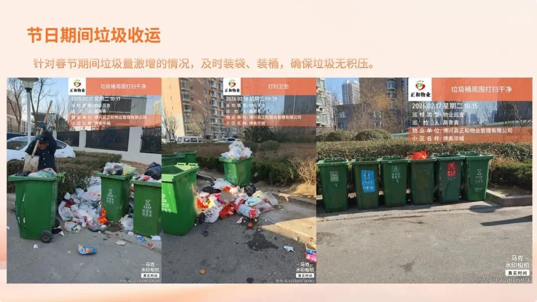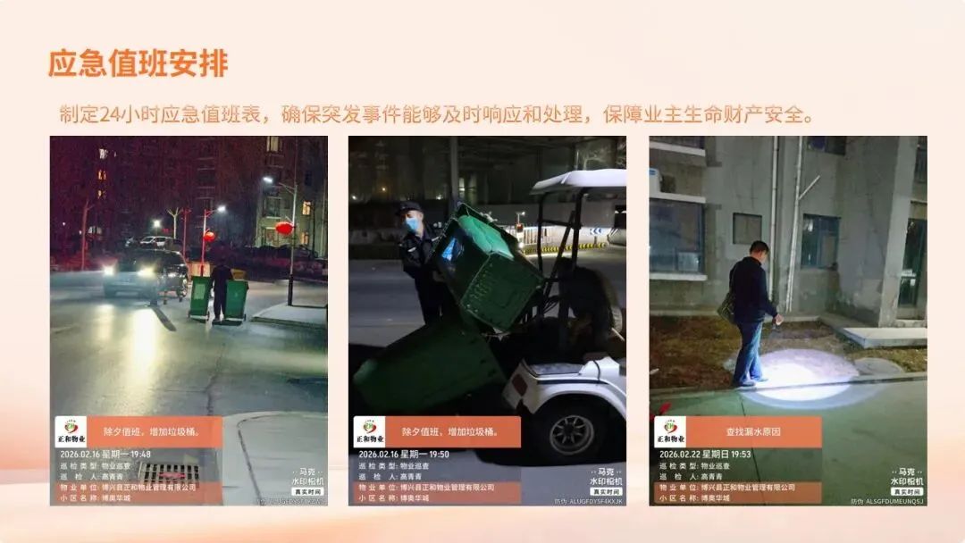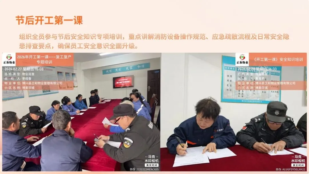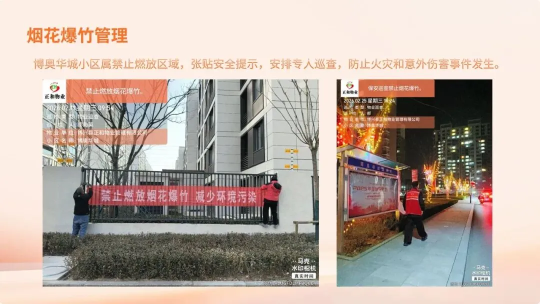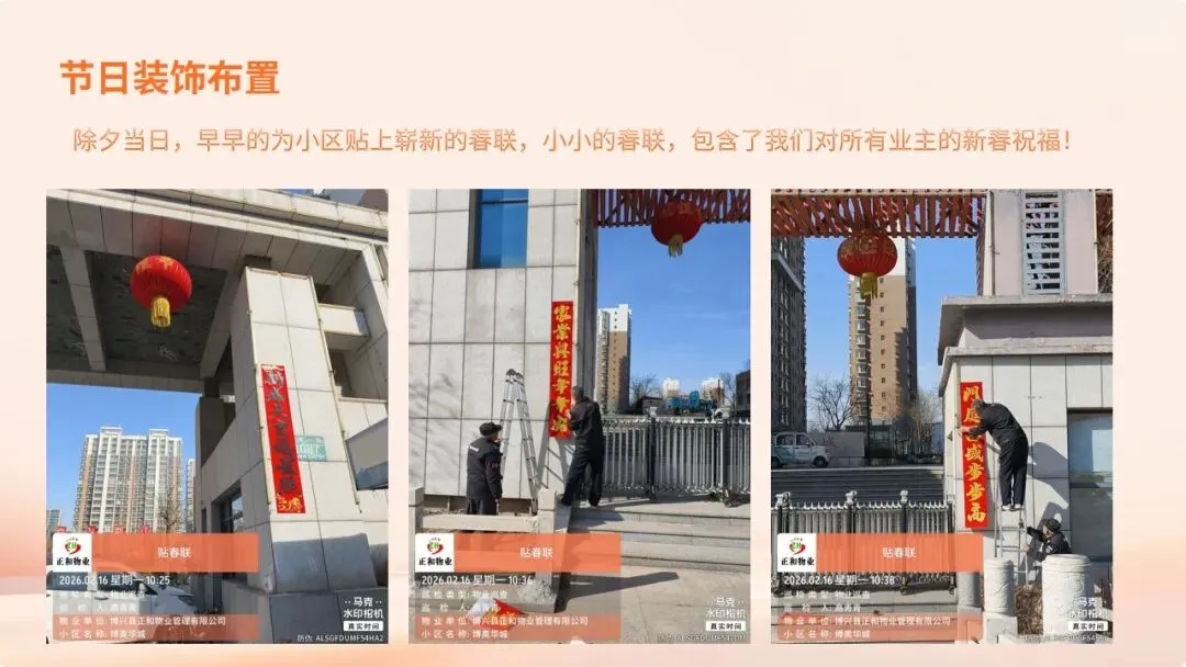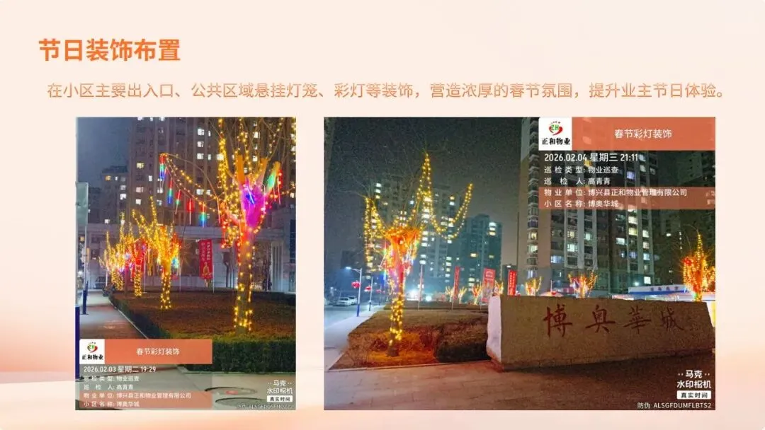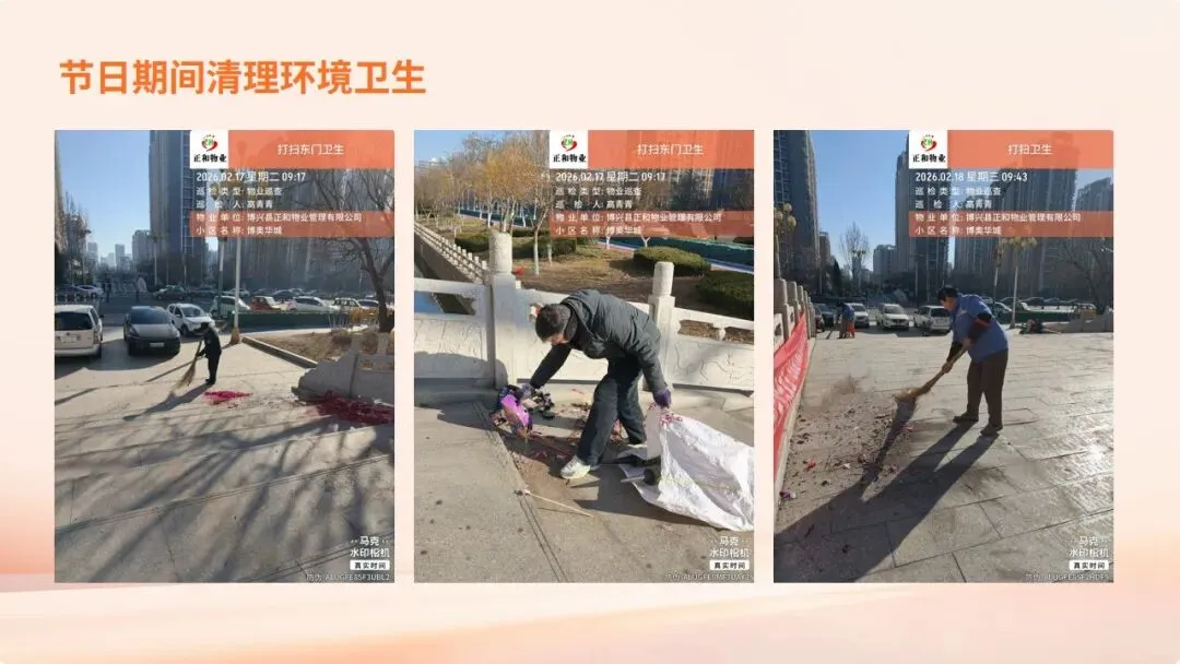 在刚刚过去的2026年春节假期里,博奥华城物业服务中心坚守岗位,以“安全无小事,服务不停歇”为宗旨,圆满完成了节日期间的各项保障工作,为小区营造了平安、祥和、温馨的节日氛围。