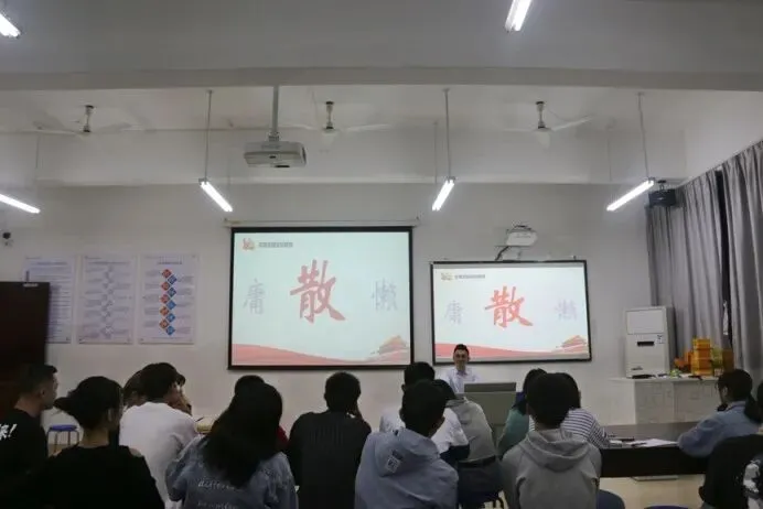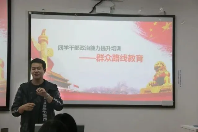 针对团学干部在工作中可能会出现的“慵、懒、散、松、软、乱”的问题,学院于2020年10月29日以“学党章、知党规、严党纪”为主题,对团学干部进行党章、党规、党纪的教育。培训内容从党章入手,加强党性宗旨教育,以党规党纪为指引阐述了做合格学生干部的标准。