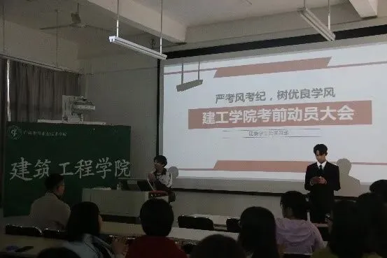 2020年1月3日下午,建筑工程学院在6521室召开2020届毕业生顶岗实习动员暨安全教育会。该院党总支书记胡维建、副院长朱艳峰和各教研室主任、实习指导老师、辅导员以及449名准毕业生参加会议。