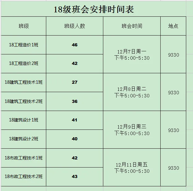 12月7日-11日,建筑工程学院在9330室举行毕业生专题班会。