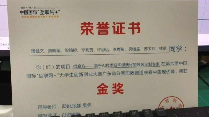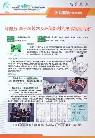 吴继孟等同学参与的项目“绿魔方——基于AI技术及环保新材的展装定制专家”在第六届中国国际“互联网+”创新创业大赛广东省分赛职教赛道决赛荣获金奖。