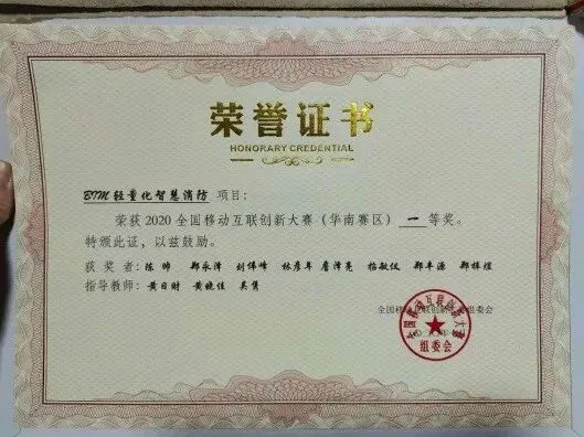 由黄日财,黄晓佳,吴隽老师指导,陈帅,郑永泽等同学参加的BIM轻量化智慧消防全国移动互联创新大赛(华南赛区)荣获一等奖。
