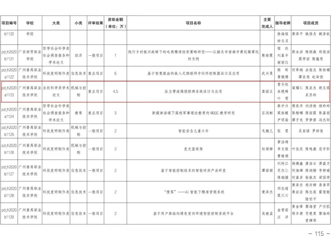 2020年 “攀登计划”专项资金拟立项项目中,曾令权、朱艳峰、叶雯指导的“压力管道漏损探测系统设计与应用”项目拟立项为自然科学类学术论文重点项目。