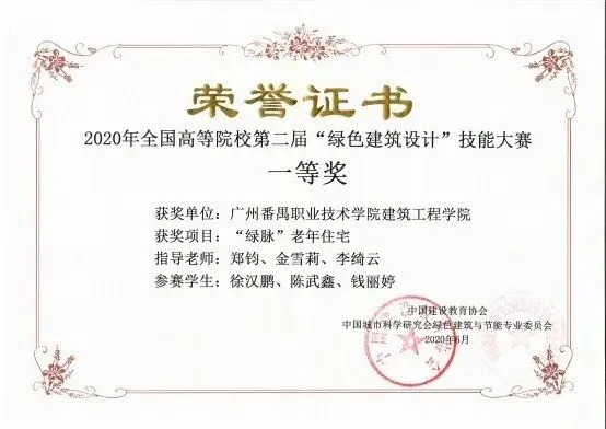 其中2020年7月,由金雪莉、郑钧、李绮云老师指导的学生团队作品《“绿脉”综合老年住宅》荣获一等奖,学生团队作品《共呼吸•绿色•新农村》荣获二等奖。