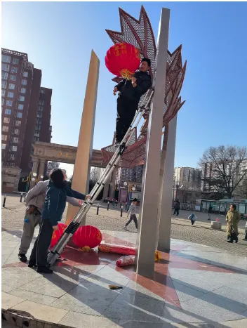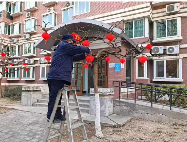 7、2026迎新年,物业组织同事们给业主们送春联活动,各个部门对园区气氛布置,贴春联,挂灯笼,接彩灯等等。