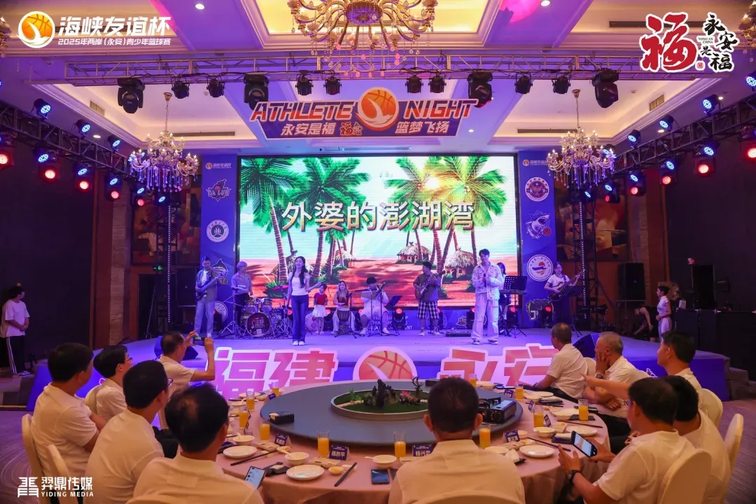 夜幕为永安披上朦胧纱衣,白日球场的激烈角逐化作此刻温情的相聚。决赛结束当晚,“海峡友谊杯”2025年两岸(永安)青少年篮球赛选手之夜活动成功举办。