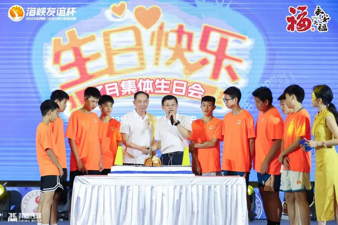 球衣交换仪式上,不同队徽的织物在掌心传递,仿佛将赛场上的拼搏精神与荣誉信念也一并交付,指尖相触的瞬间,胜过千言万语。文艺演出的灯光亮起,《两岸心连心》、《外婆的澎湖湾》、《畲乡欢歌》、《稻香》等精彩演出过后,九支点燃的生日蜡烛在七月晚风里摇曳,映照着 9 张青春的脸庞,蛋糕上的奶油沾了鼻尖,笑声便随着烛火一同跳跃 —— 白日里的对手,此刻都是共庆生辰的伙伴。