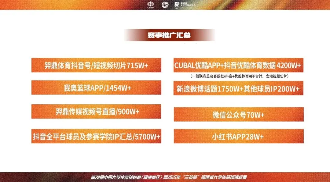 本届厦门市篮球联赛甲级赛的线上直播流量数据亮点纷呈。抖音平台以185.3万的超高关注度领跑;直播吧紧随其后,收获45.1万观众驻足;我奥篮球吸引29.5万球迷聚焦;视频号也斩获6.1万的可观流量。多平台联动发力,累计超266万次的线上聚焦,尽显厦门篮球的强劲魅力与全民号召力。