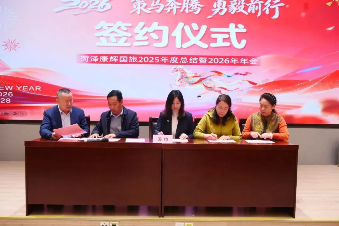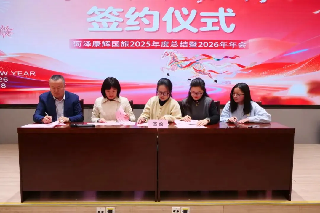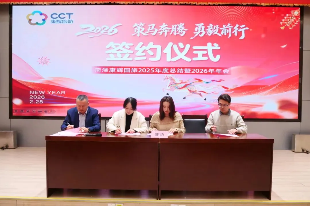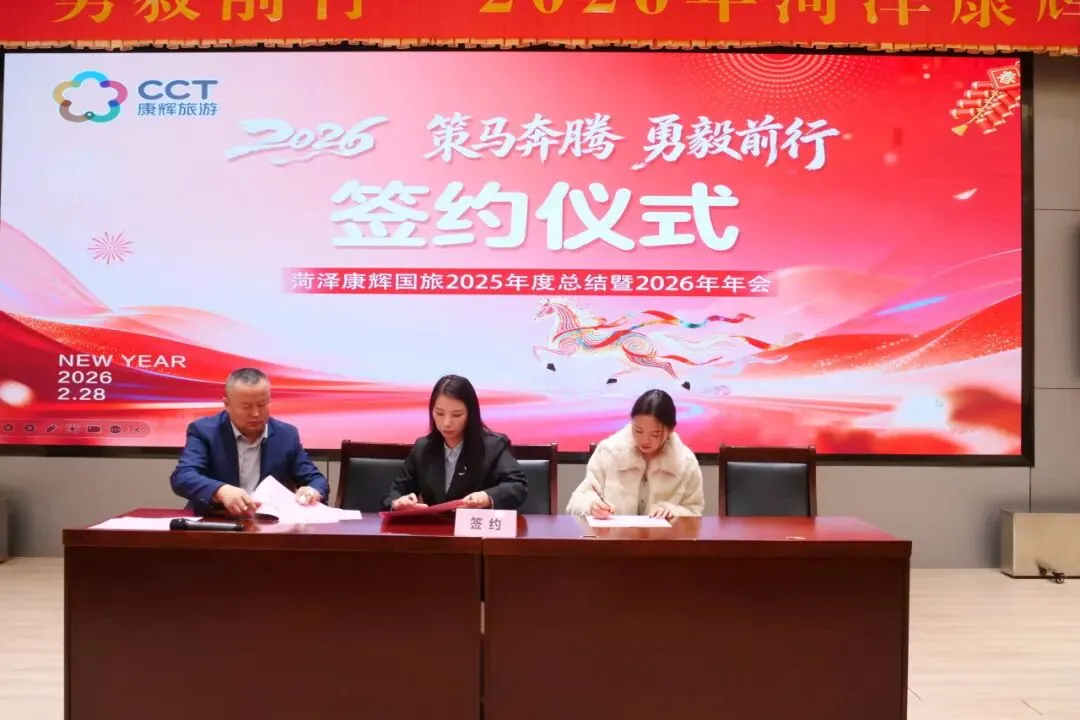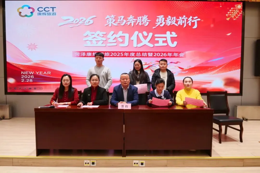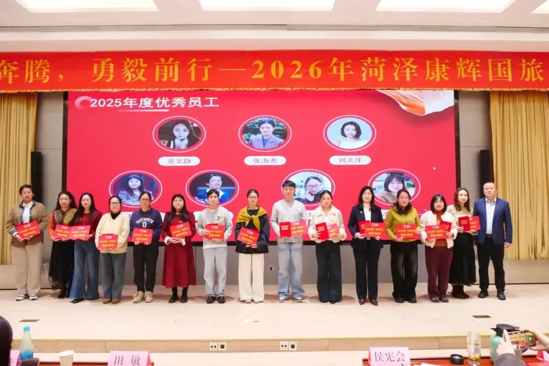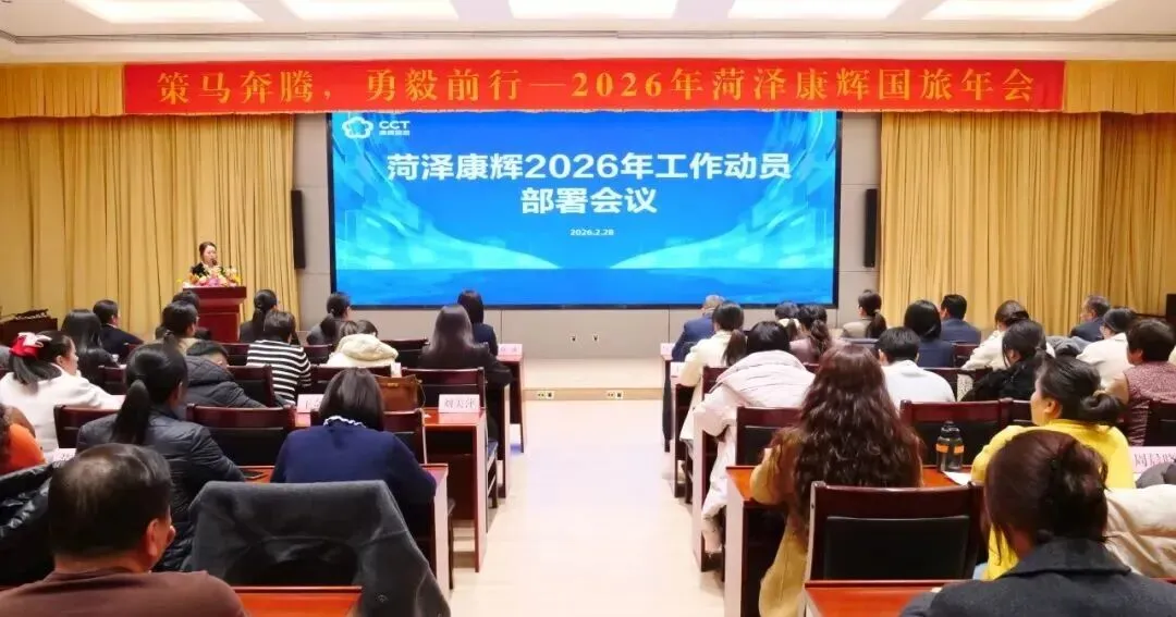 2月28日,菏泽康辉国旅2026年工作动员部署会议在中共菏泽市委党校召开,公司全体员工齐聚一堂,各部门经理进行述职,总经理室与各经营部门签订目标责任书,对2025年的优秀部门、优秀员工进行了颁奖。公司常务副总裴宽心主持会议,董事长侯宪会参加会议并讲话,山东康辉总经理刘明光、河南康辉总经理田敏应邀参加会议并做了分享。