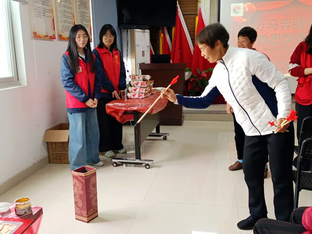 2月5日,“万马奔腾迎新春,翰墨飘香送祝福”迎新春游园会热闹举行。社区联合辖区共建单位,将拓印、投壶、赠联三项传统民俗活动搬到家门口。孩子们亲手拓印“福”字,感受非遗魅力;老人们在投壶区一试身手,重拾童趣;书法爱好者挥毫泼墨,将一副副春联送到居民手中。60余名居民齐聚一堂,在浓浓年味中拉近了邻里距离。