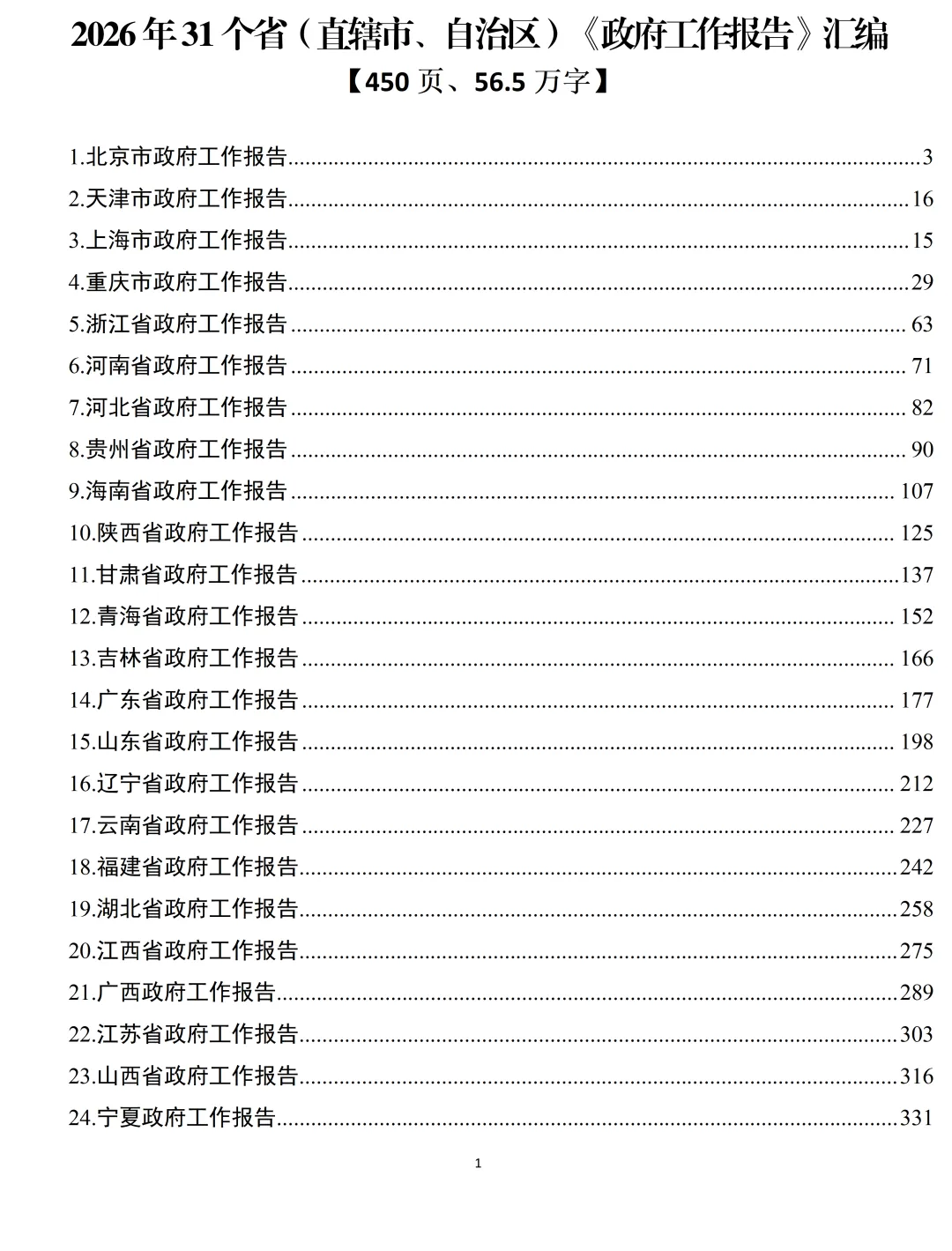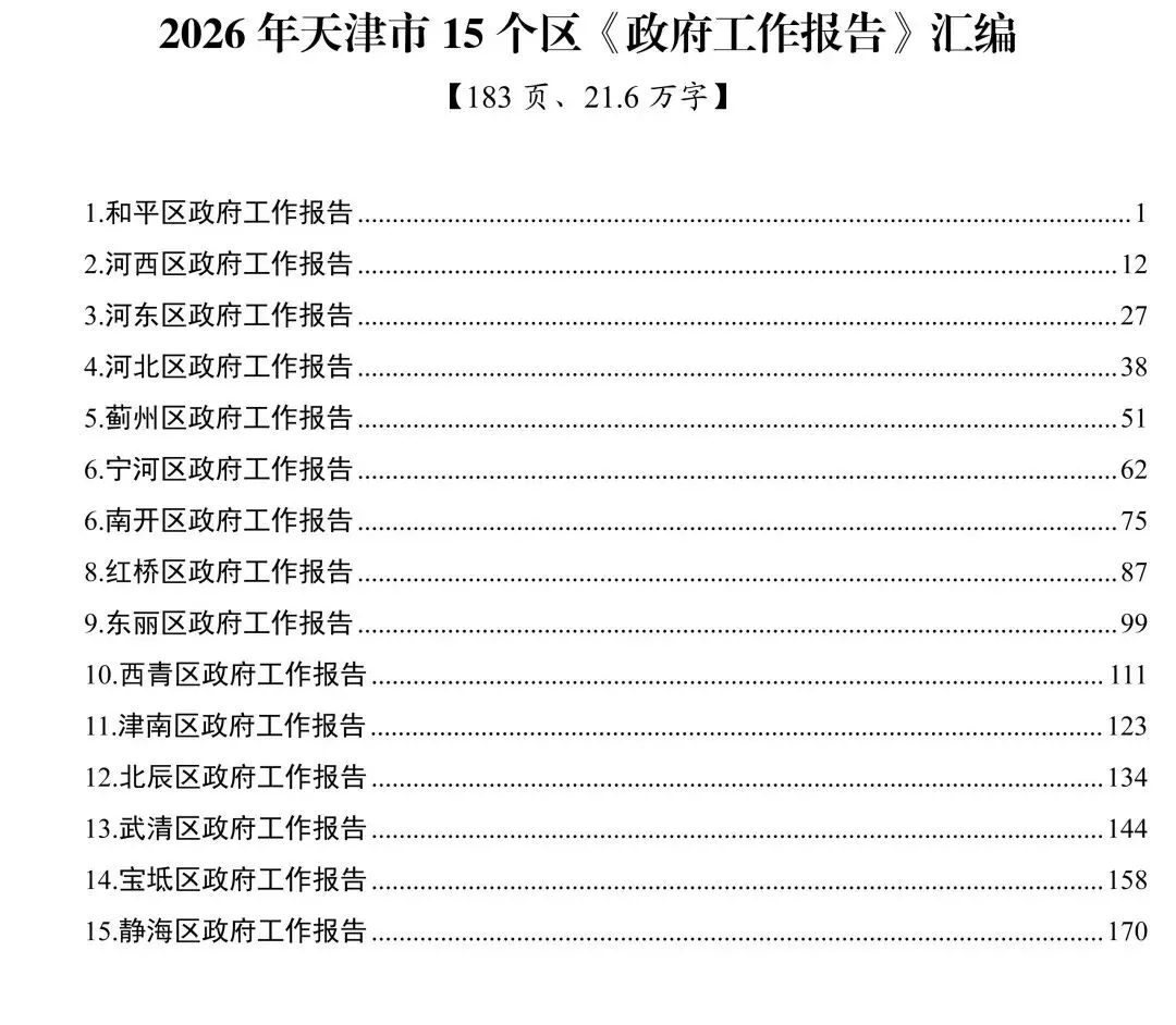 截至2026年3月1日,31个省的地级市中,浙江省、辽宁省、江苏省已全部更新,直辖市中天津市所有市辖区也已更新完。目前,所有《报告》累计字数已达137.4万。