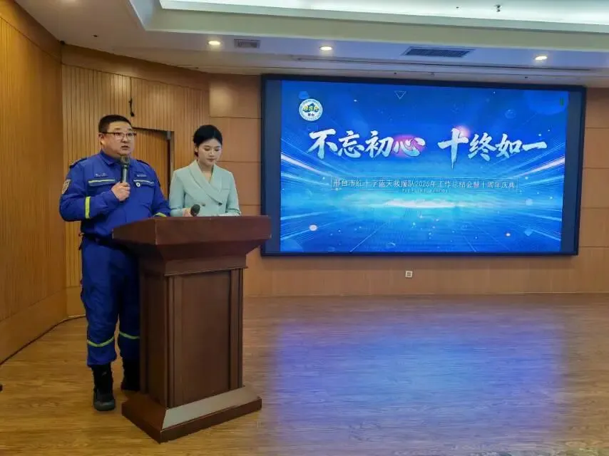 2026年2月28日下午,邢台红十字蓝天救援队2025年工作总结会暨十周年庆典在邢州大酒店会展中心隆重举行。活动现场,全体队员身着统一队服整齐列队,各界领导嘉宾、爱心企业代表齐聚一堂,掌声与欢呼声此起彼伏,处处洋溢着庄重热烈、温馨振奋的氛围,共同见证这支公益救援队伍的十年荣光。