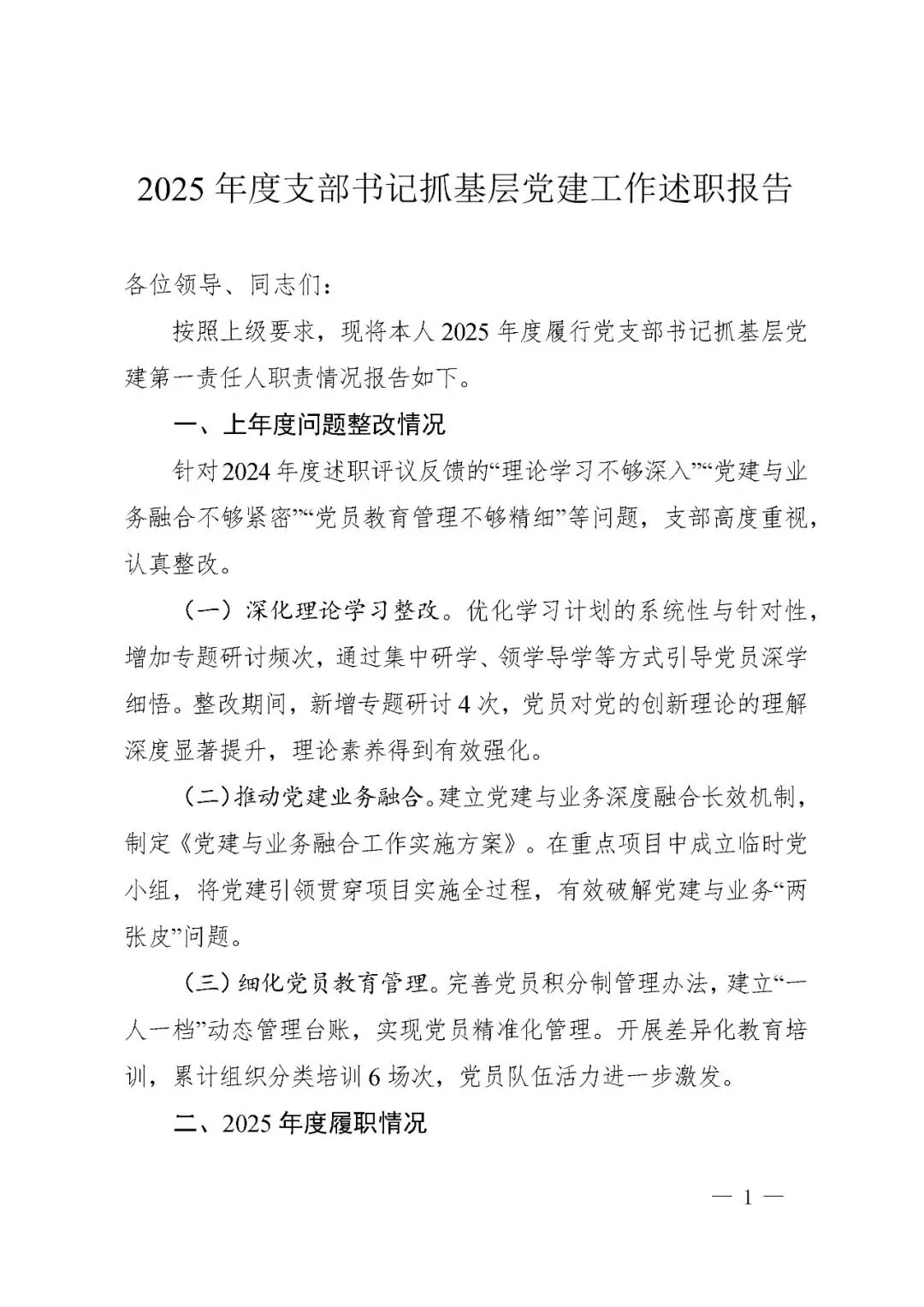 >2025年度支部书记抓基层党建工作述职报告