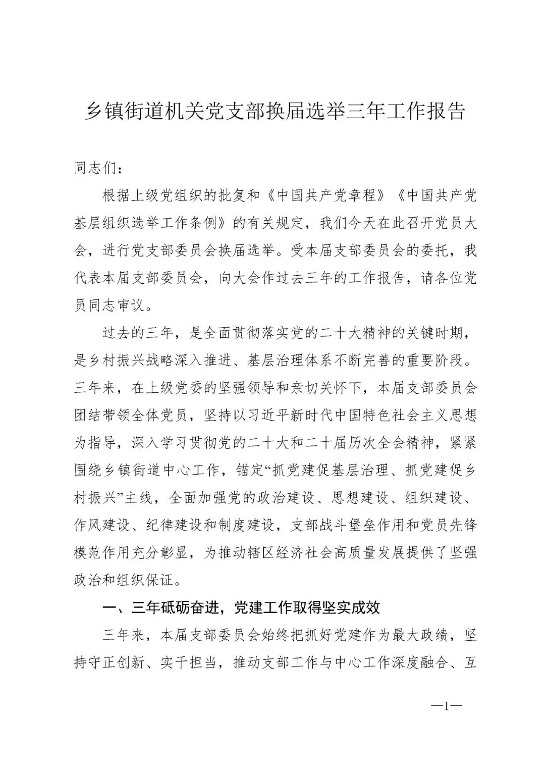 乡镇街道机关党支部委员会换届选举三年工作报告