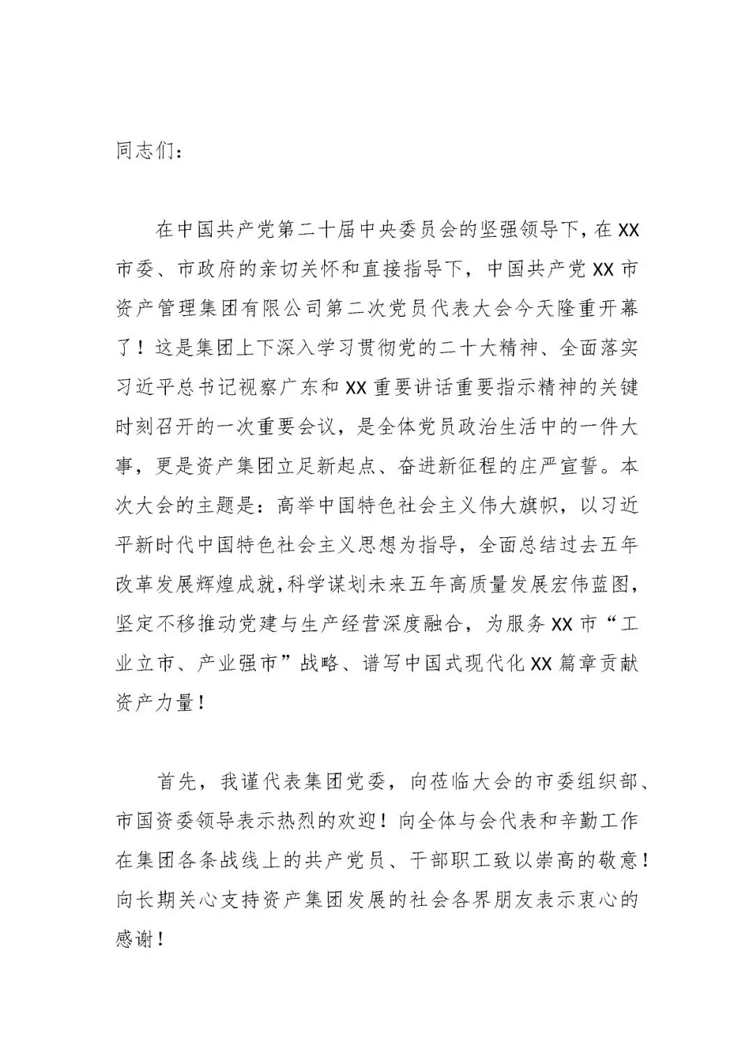 >(4篇)XX市资产管理集团有限公司党代会工作报告汇编