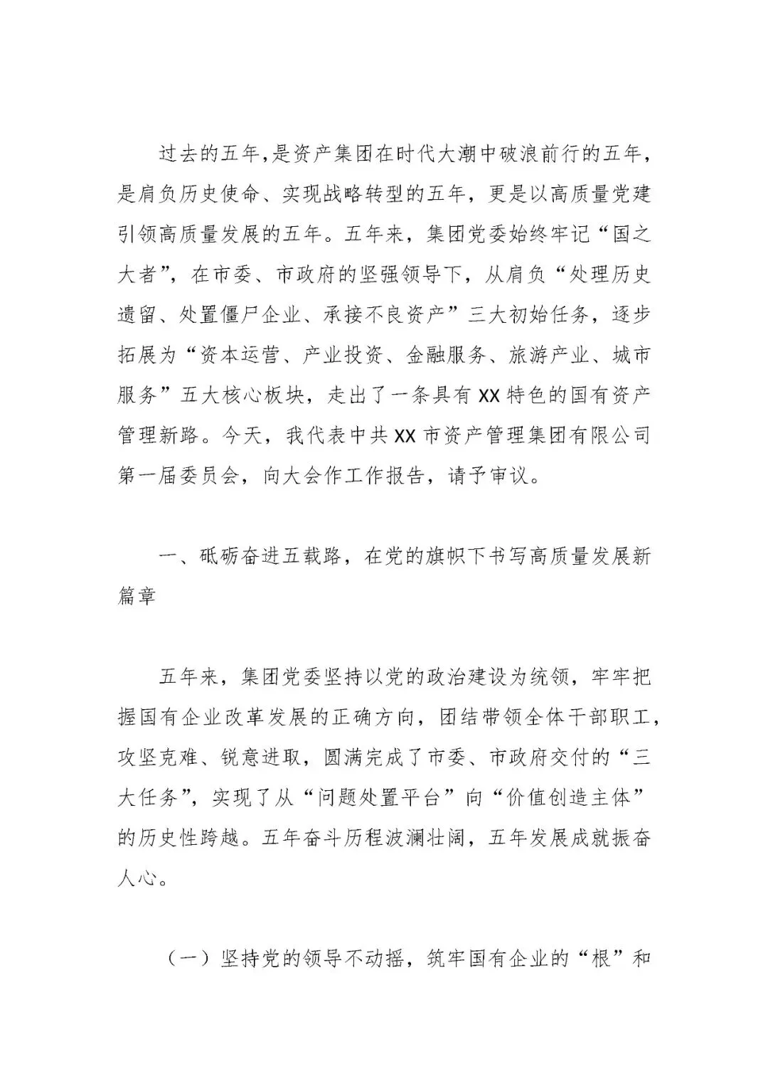 (4篇)XX市资产管理集团有限公司党代会工作报告汇编
