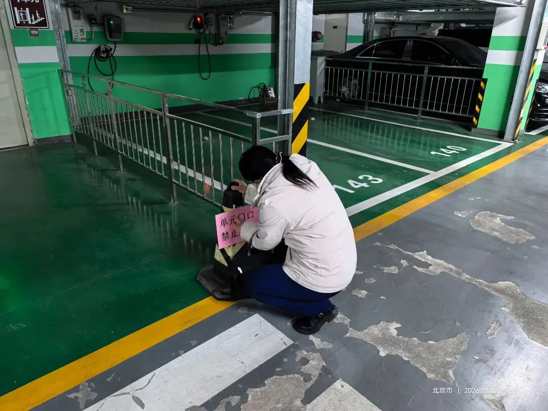 北区机械车位上方铁片粘贴防撞条。