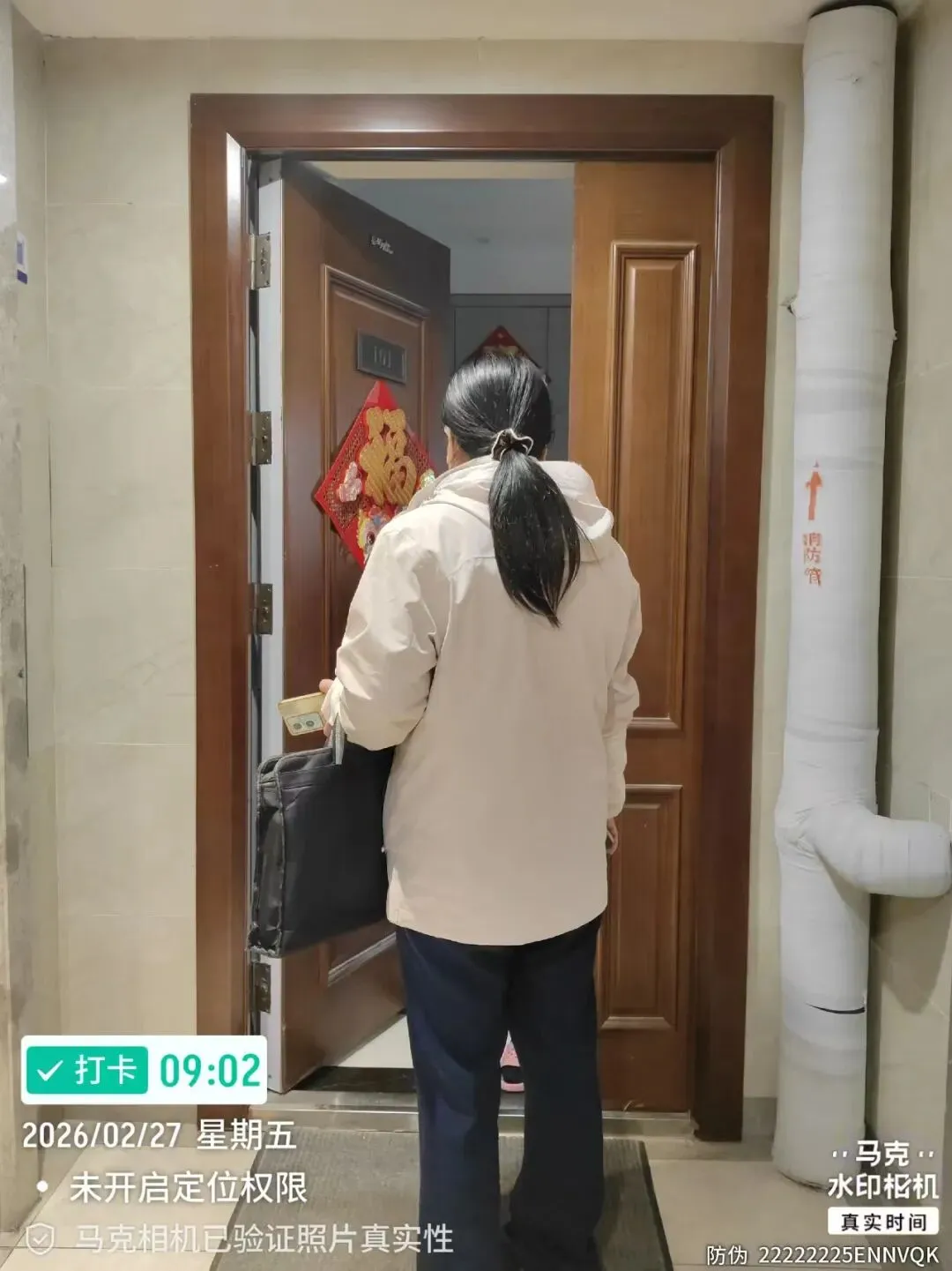 燃气公司入户检查,核实安检员身份并报备,登记进入小区。