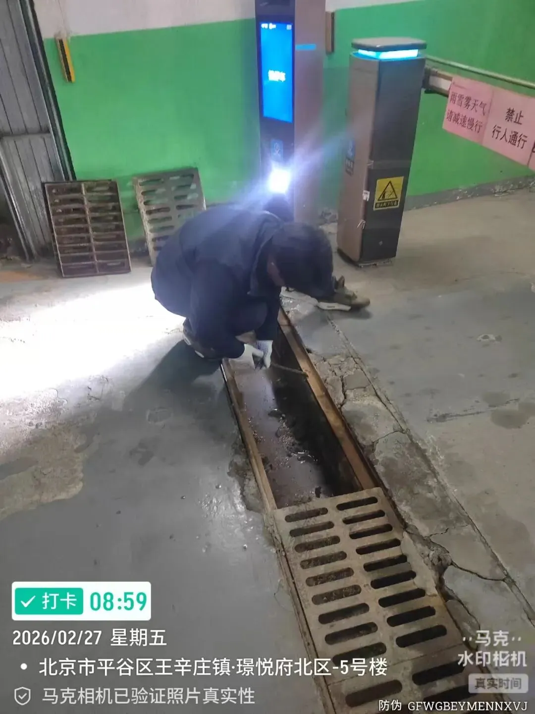 全面检查地库出入口雨箅子,排查雨箅子是否松动、缺失、破损,发现疑点及时焊接加固和替换,移位部件进行复位。