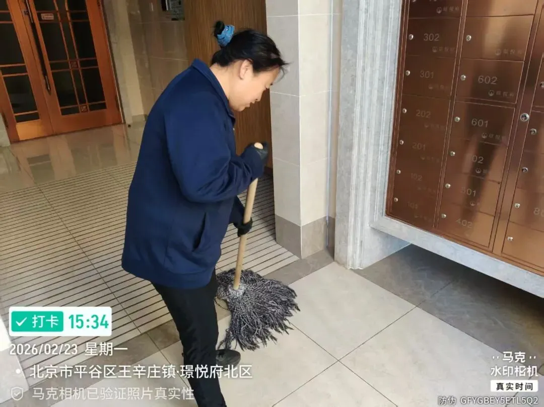 保洁员日常打扫楼宇卫生,定期清拖地面。