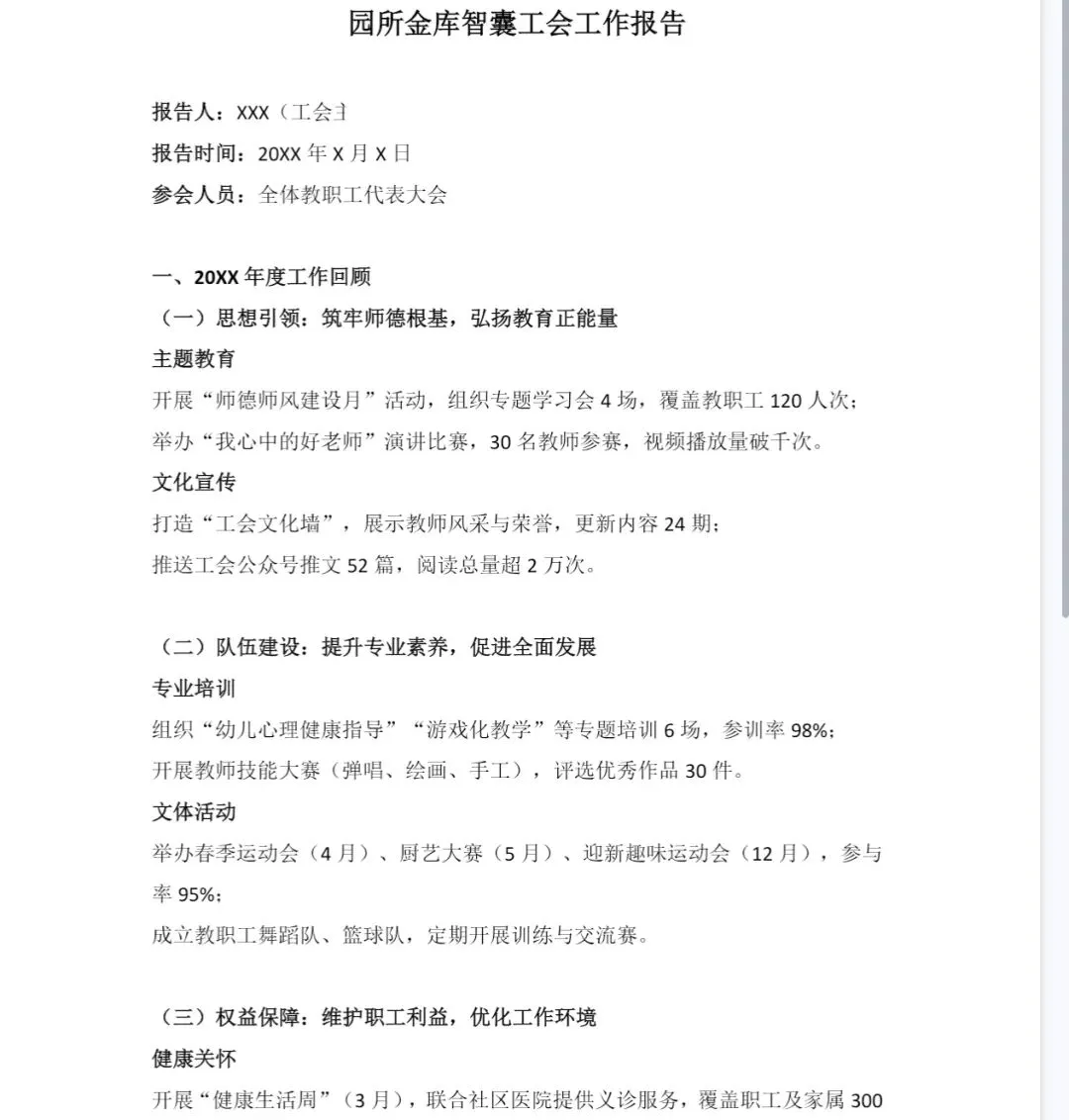 幼儿园工会工作报告 ‖ 幼儿园工会工作台账资料大全