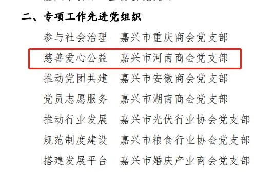 党支部荣获嘉兴市工商业联合会(嘉兴市总商会)专项工作先进奖
