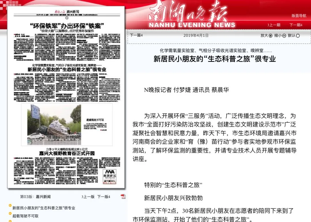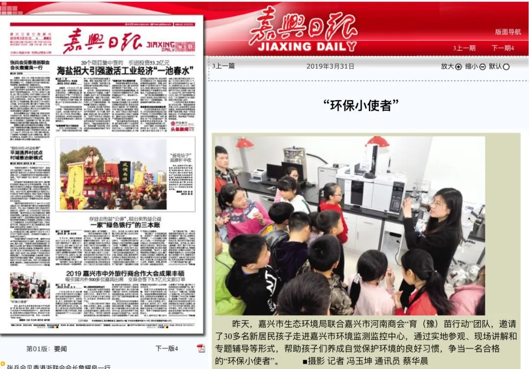 3月31日,嘉兴日报报道育(豫)苗行动集体活动