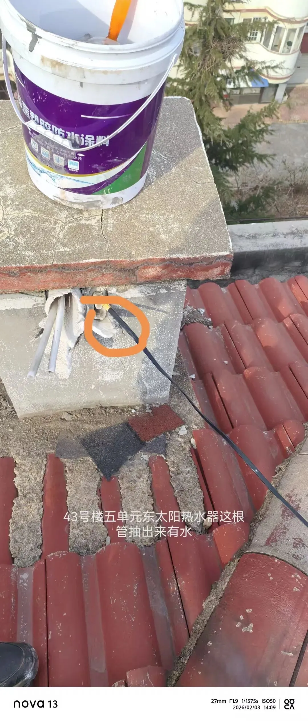 帮业主排查漏水原因,最终发现是太阳能管坏。