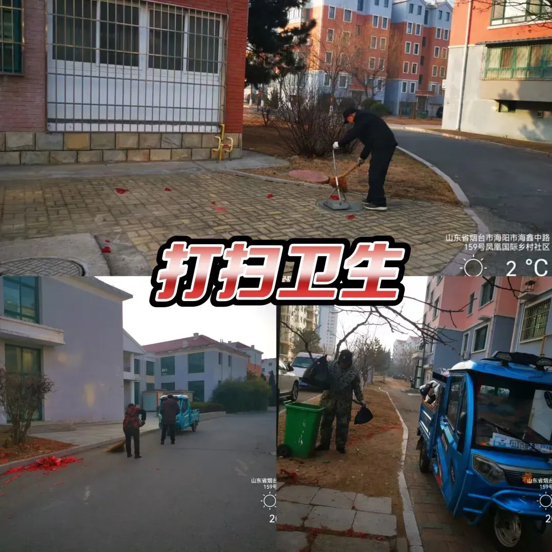 年前,徐主任安排所有保洁无死角的进行一次大扫除,春节期间及时清理烟花爆竹。
