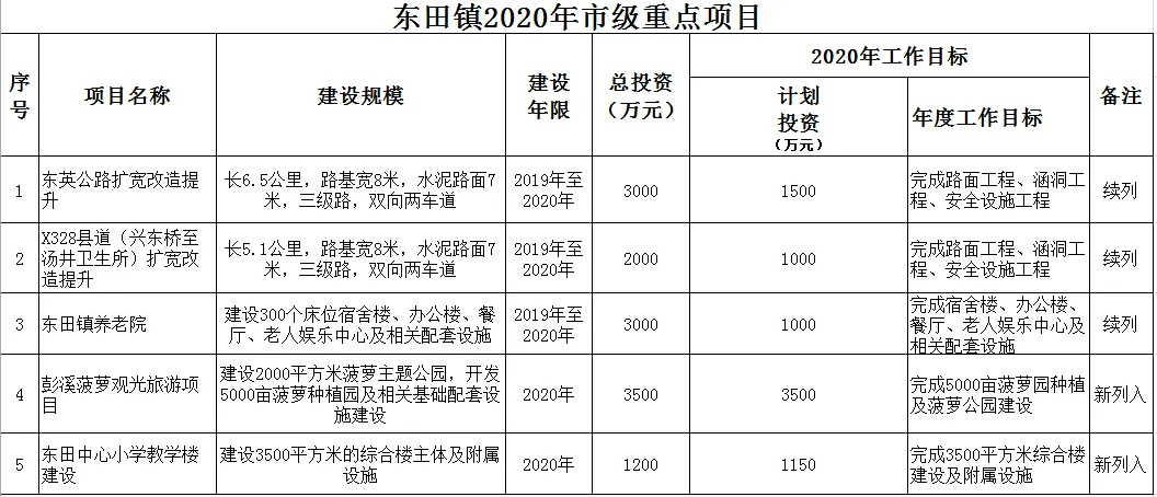 报告提出,要深入开展“项目攻坚2020”,滚动实施好重点项目完成投资640亿元以上。这其中,咱们东田2020年市级重点项目共有5个,预备重点项目3个,总投资125700万元。