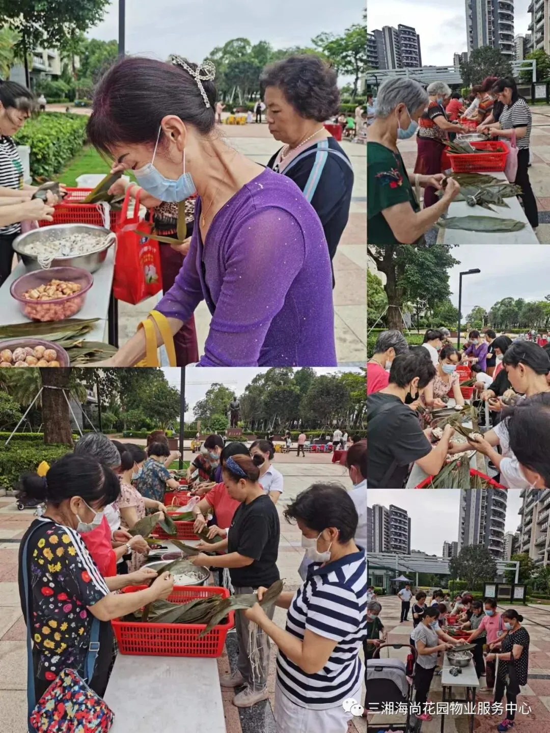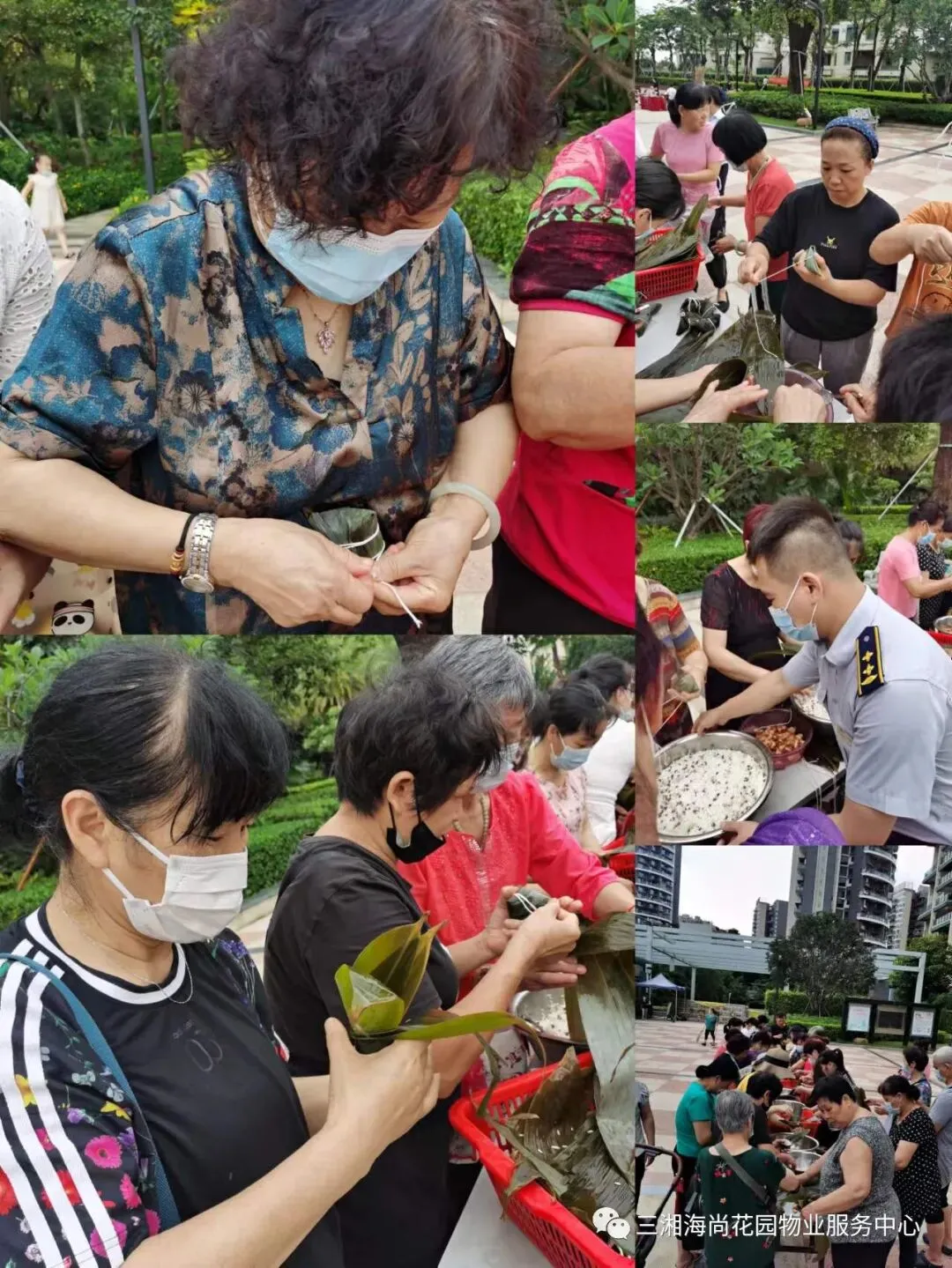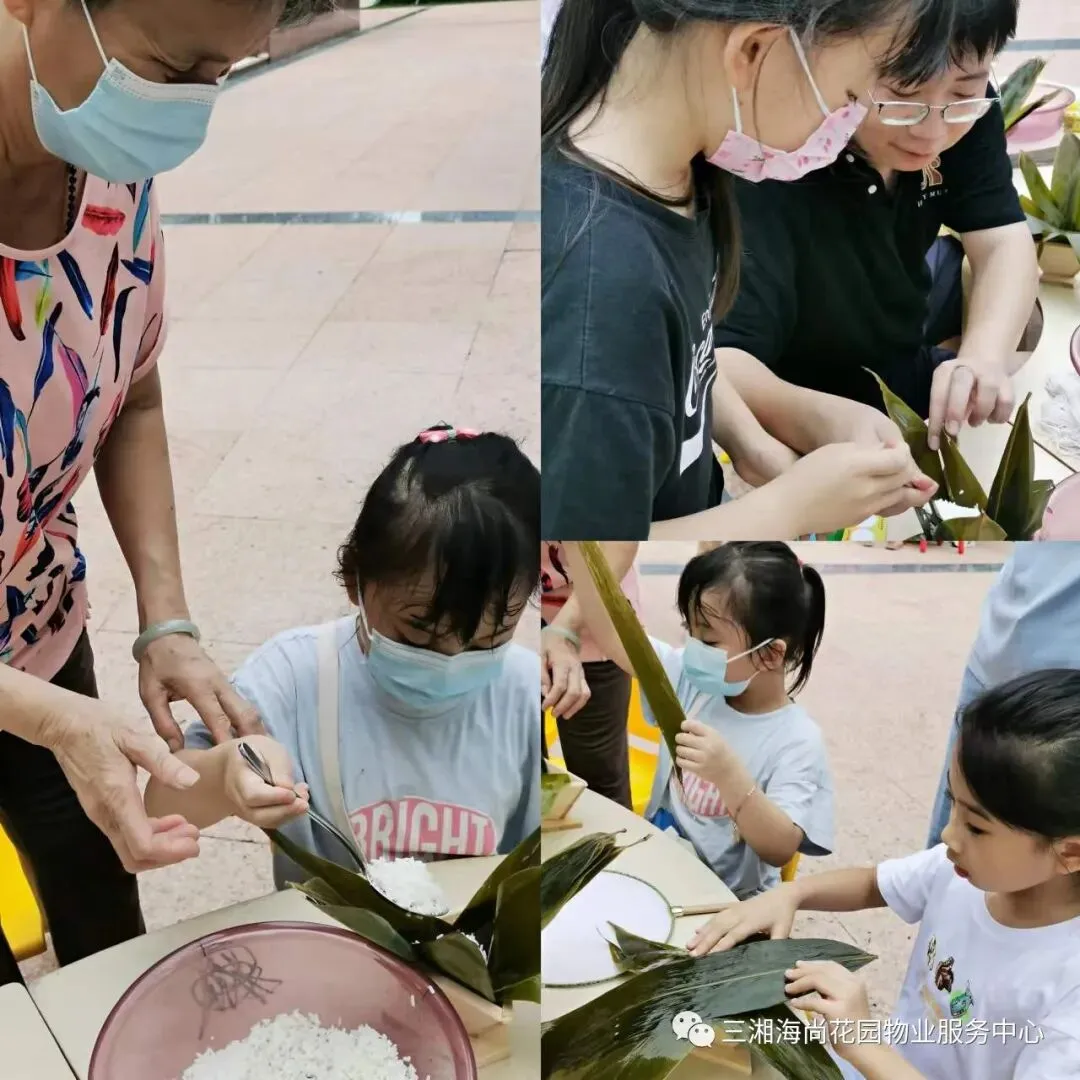 六月的深圳,应该是晴空万里,骄阳似火。而“六一”当日,天气特别的好,没有火辣辣的太阳,而是送来缕缕清风,家人们来到花园平台的活动现场,心灵手巧发挥到极致,一个个浑圆的粽子呈现在眼前,地域不同,粽子形状也不尽相同,长条形的、三角形的、菱形的……