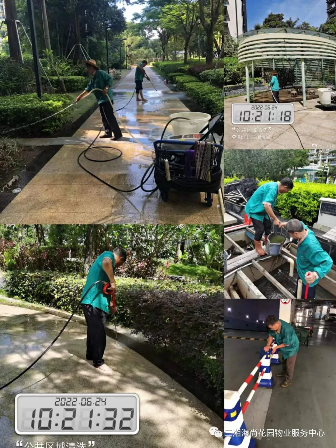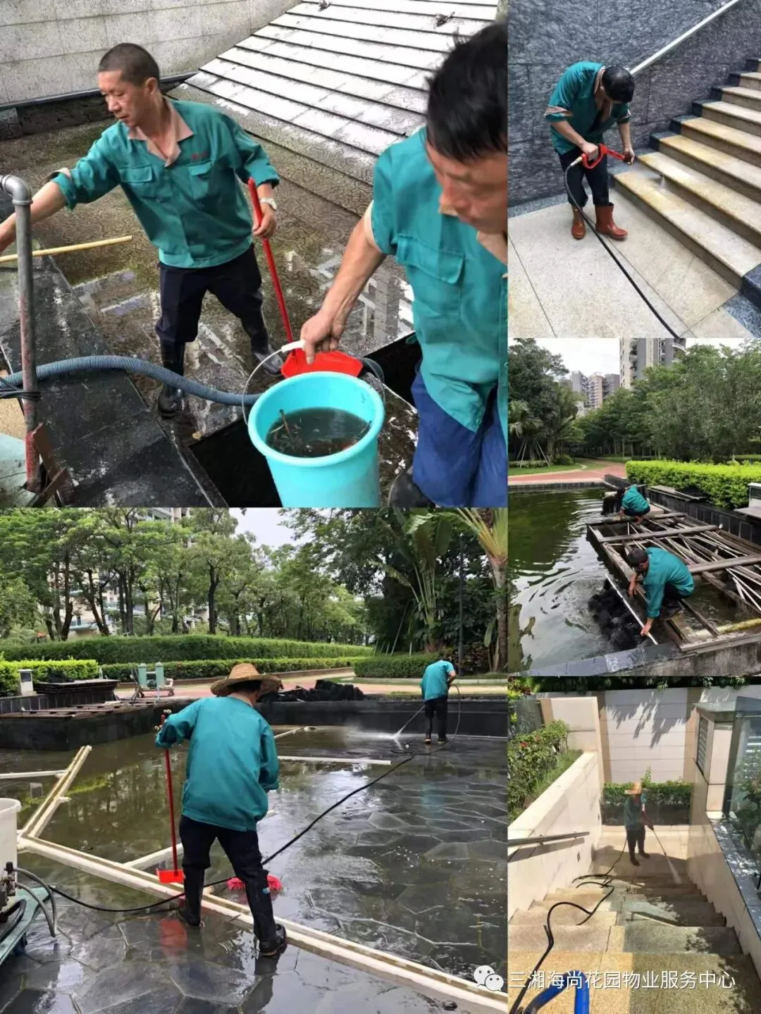 1、水景池、人行台阶、公共平台清洗。