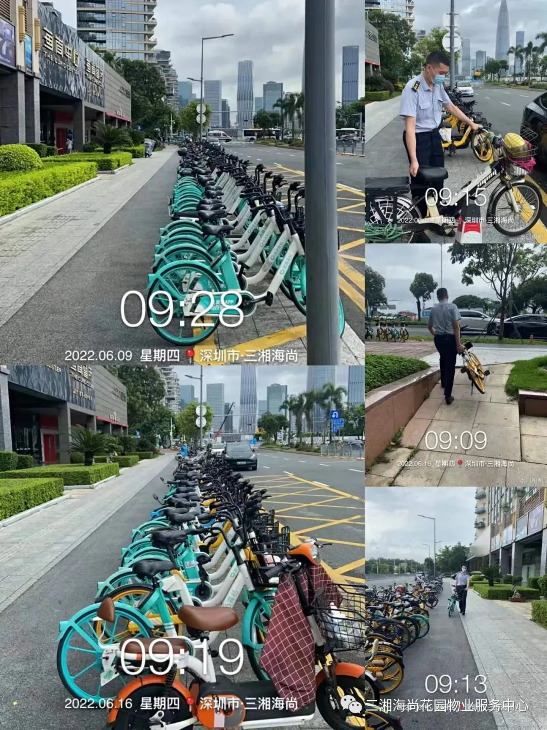 4、外围共享单车整理,保持整齐整洁,不影响行人走路。