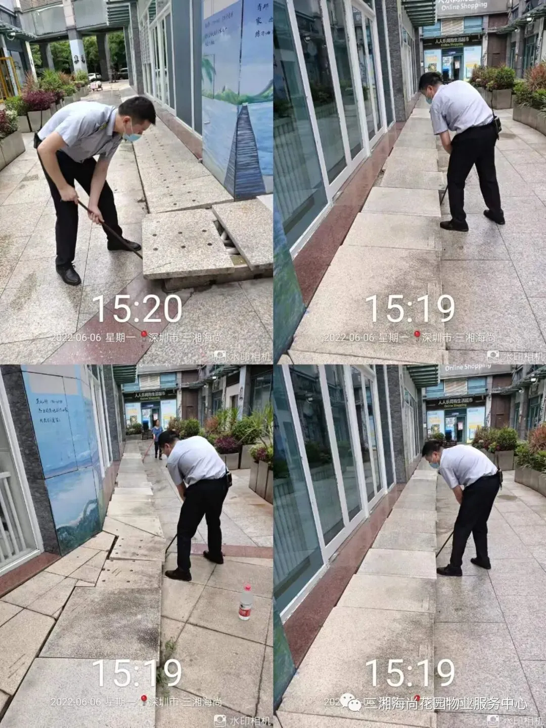 商铺外围,因下沉等原因导致地面空鼓,地砖松动,巡逻排查隐患,及时处理,杜绝不安全事故发生。