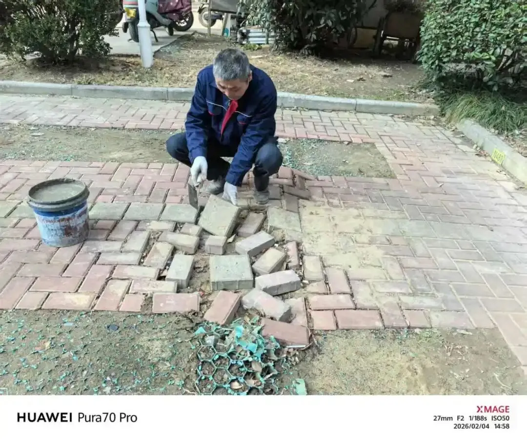 ▲车位彩砖松动维修