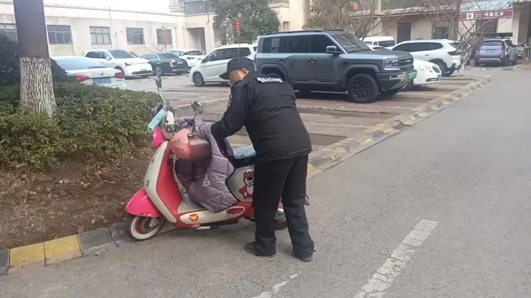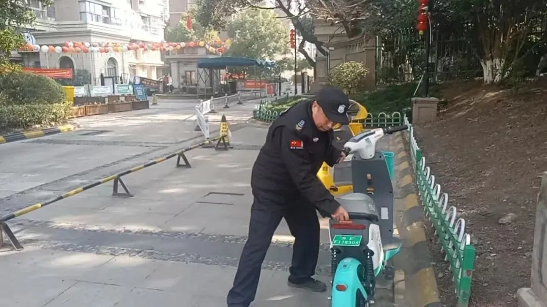 ▲清理大厅、单元门口、路面违停电瓶车