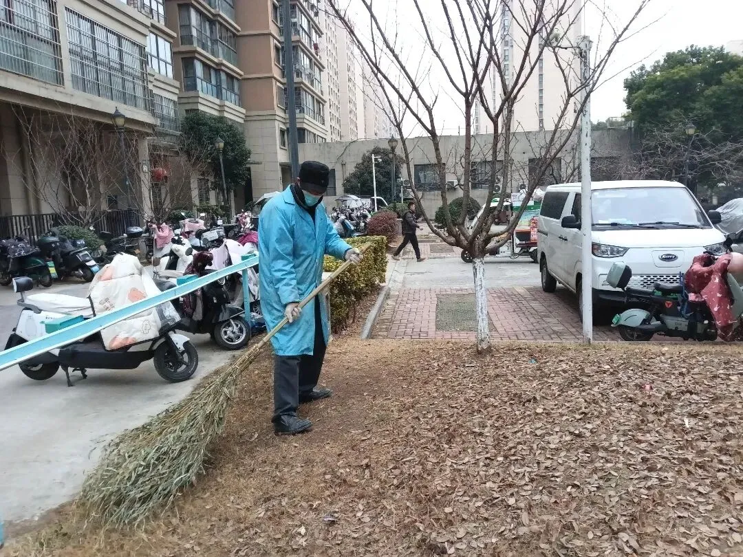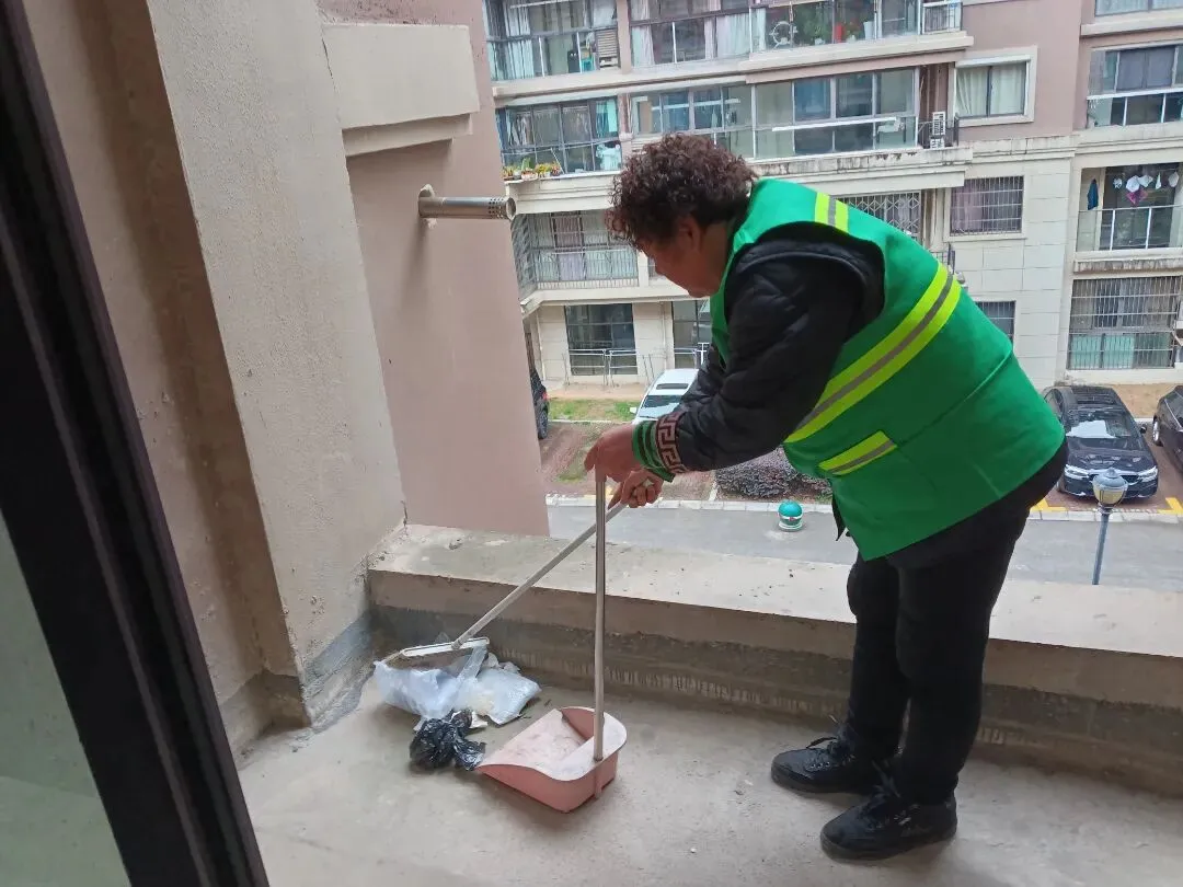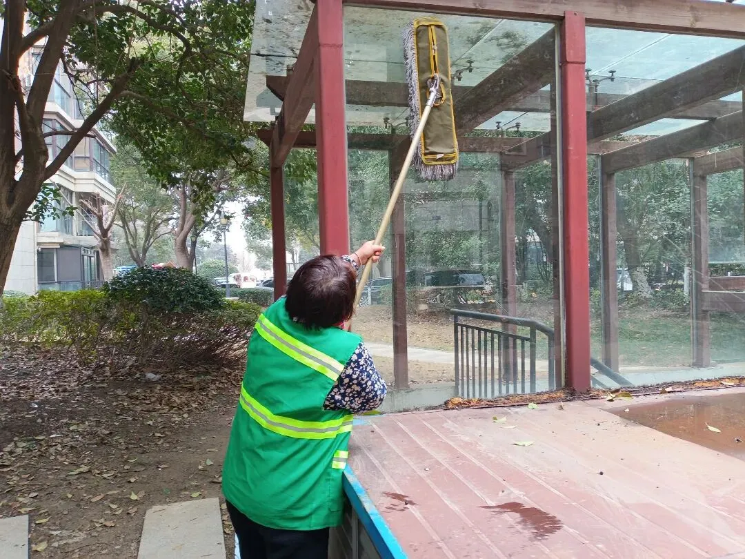 ▲打扫二楼平台卫生