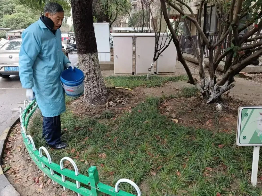 ▲清理绿化带内落叶